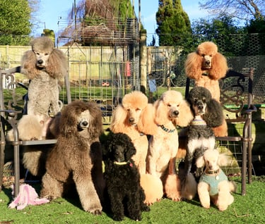 My name is Jane Rowden, I bought my first standard poodle in 1989 from Pauline Gibbs of Montravia poodles, from that moment onwards I have been captivated by the humour, intelligence and appearance of standard poodles. All my dogs live in our family home and are very much pets before they are anything else, in fact only a couple of my dogs are being bred from at any one time, most are either retired from breeding or have never been bred. The same is true of my cats, a breed that I first owned in 2004. All my pets are raw meat fed and minimally vaccinated.