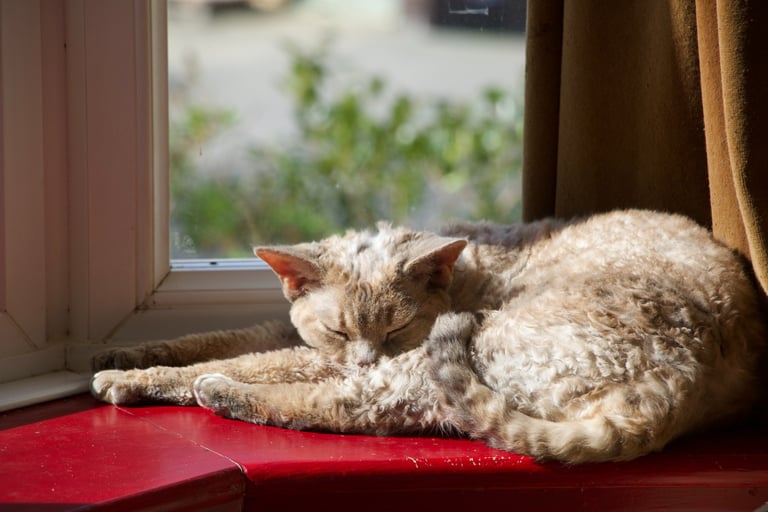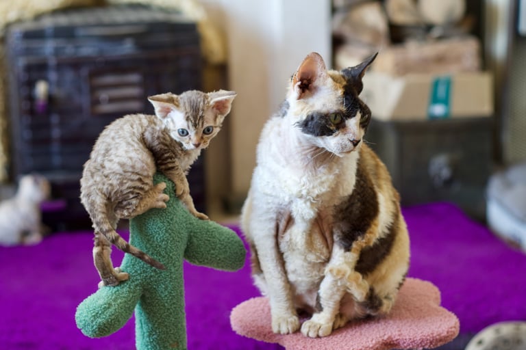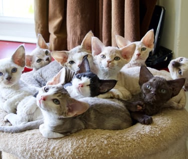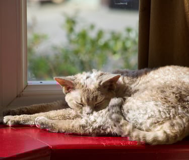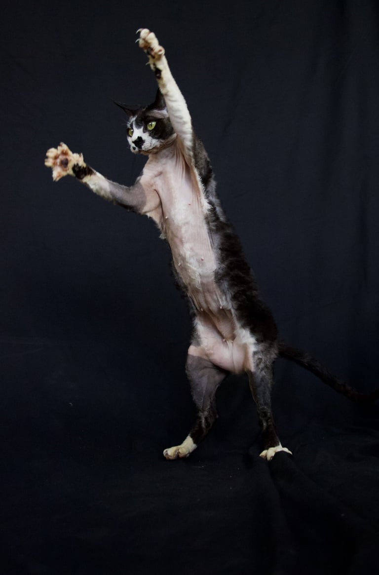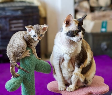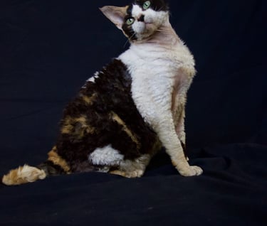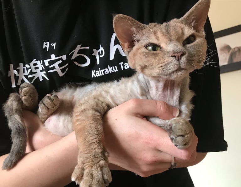 Margo was born in 2013, one of my first litters of Devons from the best cat in the world (though possibly not the best example of the breed) Sybil. She had big shoes to fill but she stepped up in terms of character but was sadly lacking in maternal instinct, unlike Sybil who was born to be a mum. Margo had just one litter, she wasn't a natural so she was spayed after that. She became my daughters favourite cat, a position she still holds today.