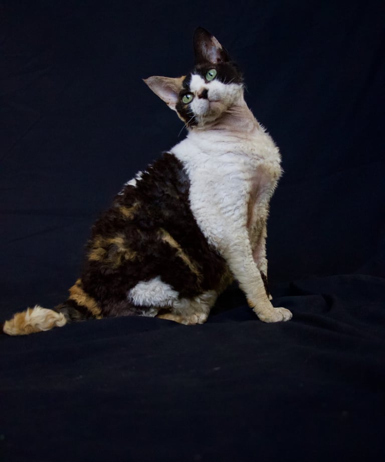 Kenji is the youngest of my cats and probably the best example of a Devon out of my girls. She has several generations of Itzapromise cats behind her, going all the way back to my foundation queen, Sybil. A little shy with visitors but an absolute joy with people she knows. Her kittens however have all been as bold as brass. Kenji is currently the only entire girl at Itzapromise.